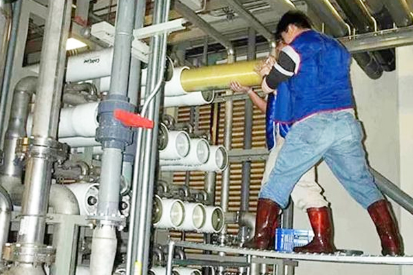 恢复供水前的准备:在反渗透设备重新投入使用时,需要进行一些准备工作。首先,用低压给水冲洗系统0.5-1小时,然后再用高压给水冲洗系统5-10分钟。在恢复系统至正常操作前,应检查确认产品水中不含任何杀菌剂。