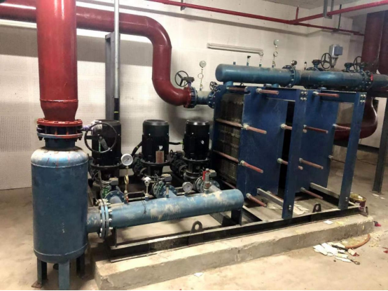 红会医院高铁新城院区换热站及制冷机房设备设备名称:集分水器+全程综合水处理仪+板式换热器+软化水设备品牌:洵润环保原水水质:市政自来水水工艺流程:交货周期:25天